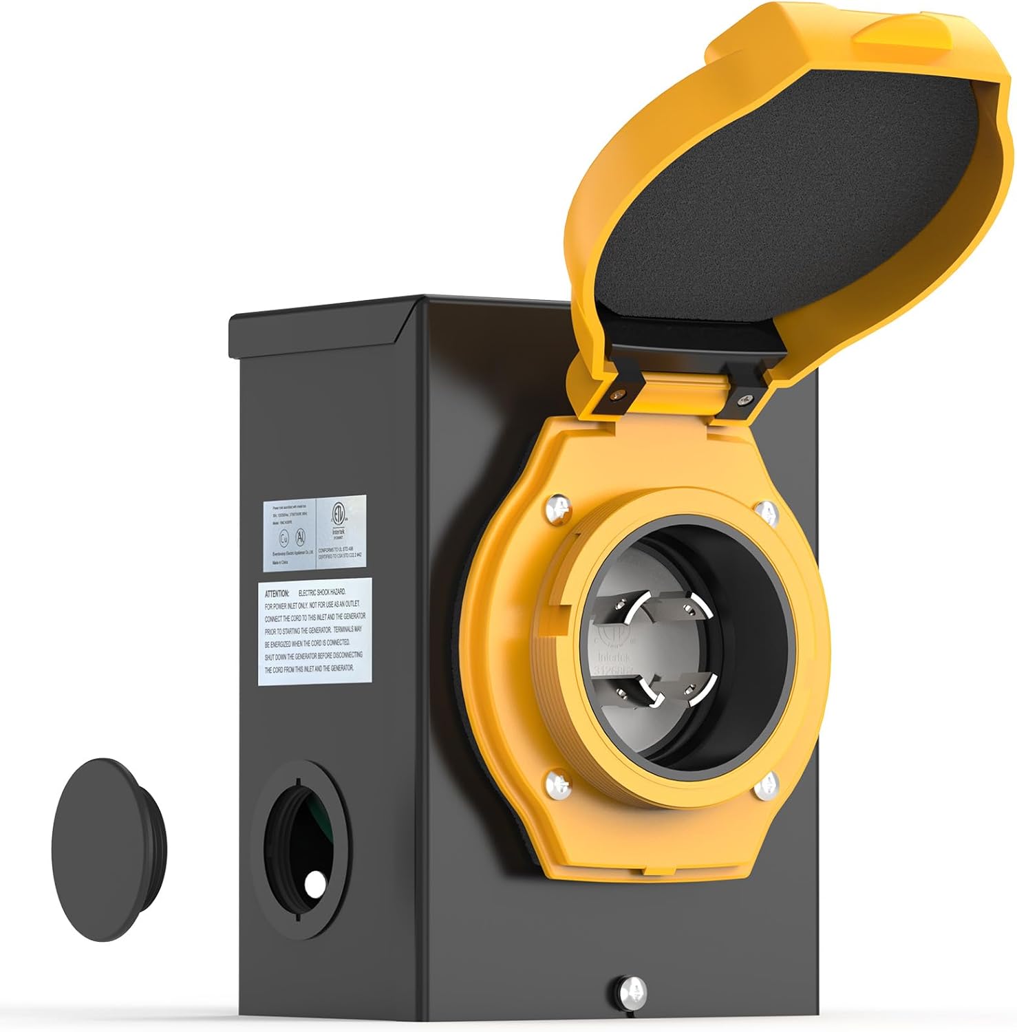 This is a 30 AMP standard generator outlet to connect your home panel to a generator.